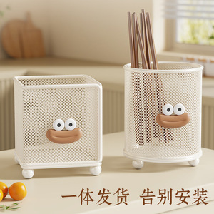 筷子收纳盒厨房置物架免安装一体壁挂式家用筷筒筷笼餐具勺沥水架