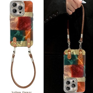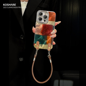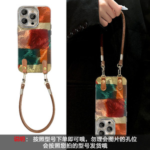 レトロなカラーブロックのストラップ Apple 16e 携帯電話ケース 14promax 氷河パターン 15 ハイエンド 13 Huawei p80 に適しています