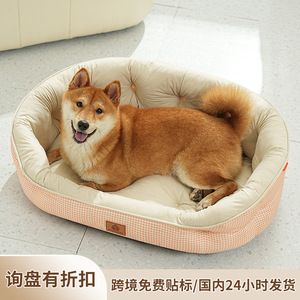 オールシーズン対応の犬小屋、樽型ペット小屋、犬用寝マット、チェック柄のシンプルなペット小屋、寝用専用犬小屋