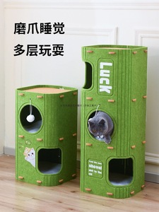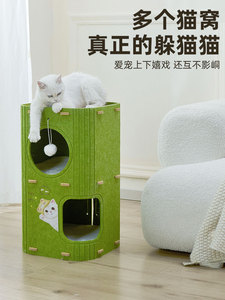 オールシーズン対応の多層キャットネスト、キャットクライミングフレーム、キャットツリー一体型スクラッチボード、密閉型キャットハウス、キャットツリーハウス、家庭用二層