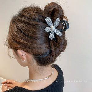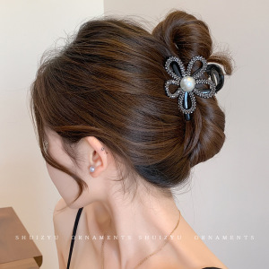 1#银色花朵水钻抓夹8cm