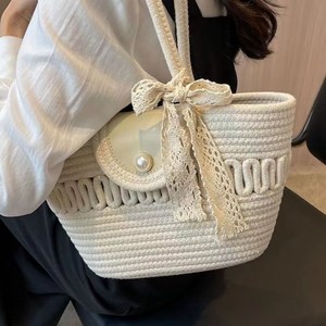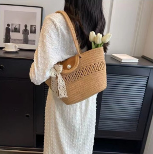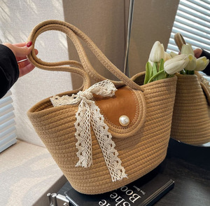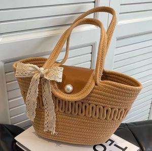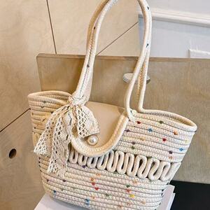 シンプルな織りハンドバッグ、大容量の通勤トートバッグ、多用途のシルクスカーフショルダーバッグ、カジュアルトラベルビーチバッグ