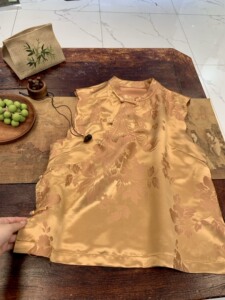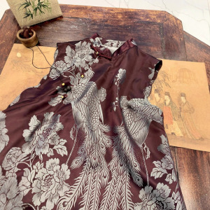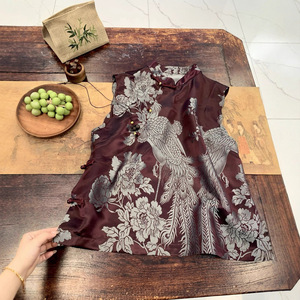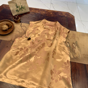 真丝老缎小背心2025新款国风百搭圆领无袖宽松显瘦印花马甲背心女