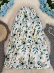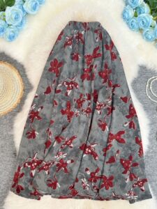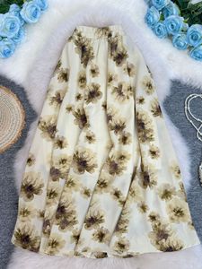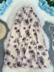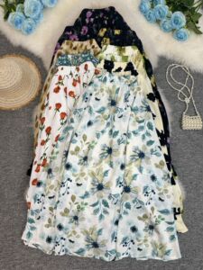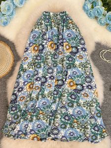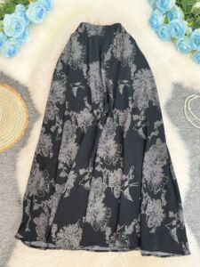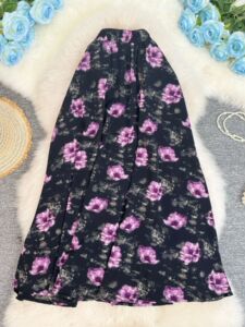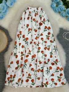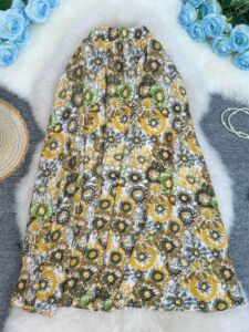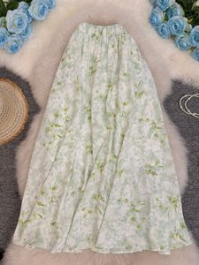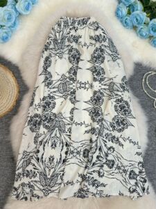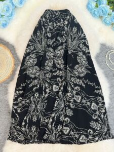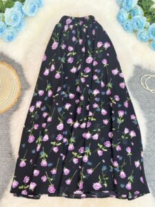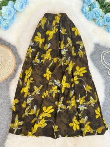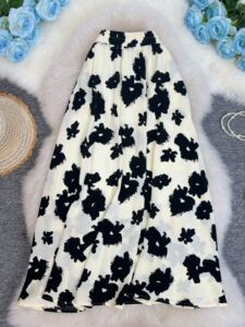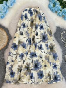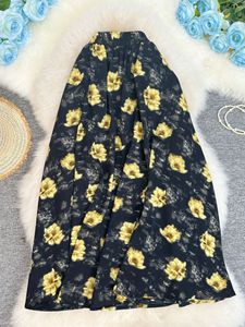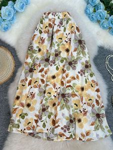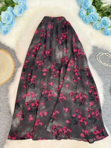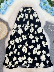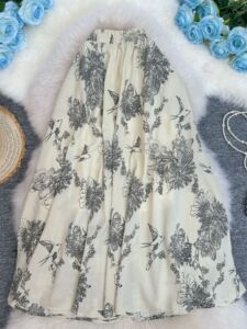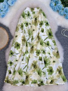 2025 新しい夏のエレガントなレトロなインクプリントの大きなポケットスカートクラシックな多用途のミドル丈スカート