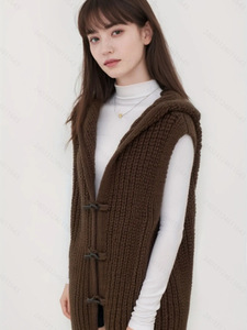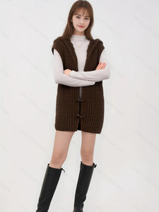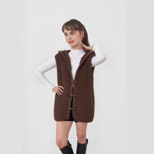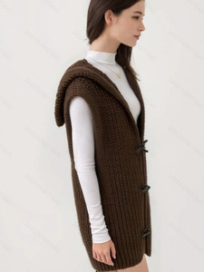 中长款毛衣外套女装2025年新款马甲春秋季 连帽针织开衫马甲外搭