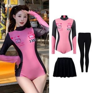 粉连体泳衣+长裤+裙