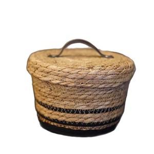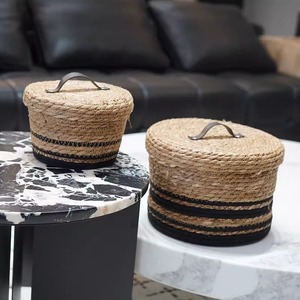 亚马逊诧寂风桌面杂物收纳盒带盖手工草编家用零食杂物储物收纳筐