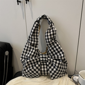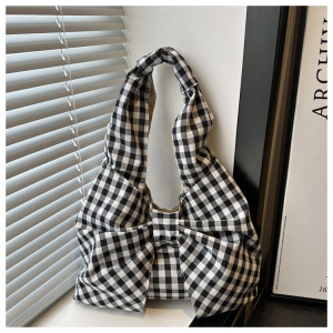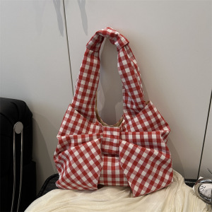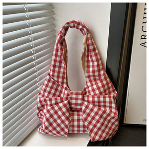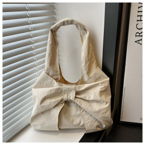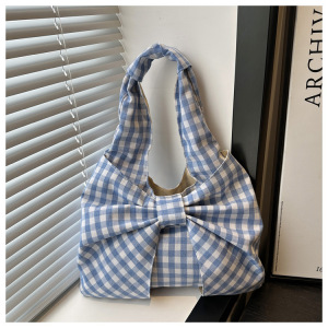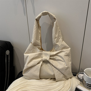 2025新款时尚简约牛仔布单肩手提包质感蝴蝶结小众通勤托特包