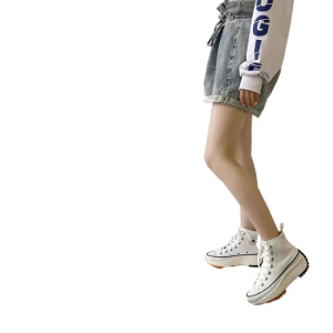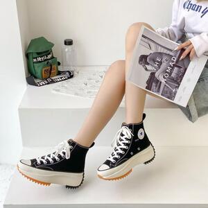 女性用の白い靴、女性用のハイトップ厚底キャンバスシューズ、トレンディなアメリカンスタイルのカジュアルな夏のファッショナブルなスポーツシューズ