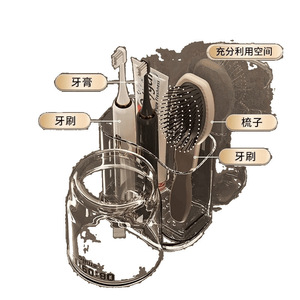 透明色 1パック(ウォッシュカップ・歯ブラシ収納ラックセット)