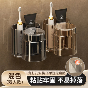 歯ブラシホルダー、マウスウォッシュカップ、パンチフリーラック、歯ブラシホルダー、歯ブラシカップ、バスルーム歯ブラシカップホルダー、壁掛け