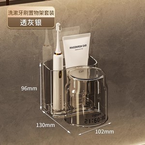 透明グレー 1パック(ウォッシュカップ・歯ブラシ収納ラックセット)
