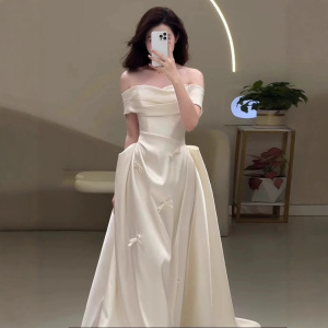 法式缎面一字肩轻婚纱新娘2025新款高级感迎宾出门纱简约订婚礼服