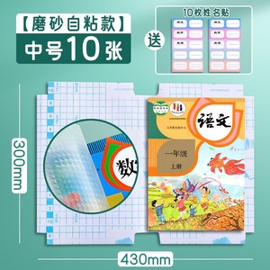 粘着ブックカバー - 中サイズ 16K (厚手素材 10 枚)、内側に名前シール付き