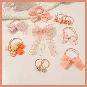 3#橘粉蝴蝶结皮筋发绳10件套