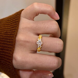 中古ブラッシュドピジョンエッグジルコンリング女性用レトロライト高級ハイエンドニッチデザインユニークなオープン人差し指リング