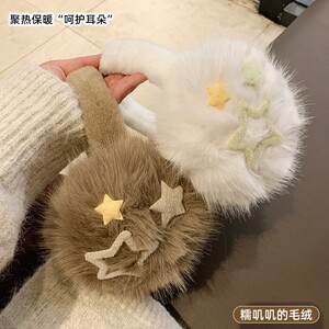 可爱星星白色毛绒耳罩女冬季可折叠保暖耳套加绒防冻护耳包耳捂子
