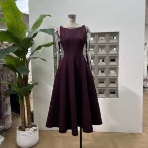 亚马逊端庄时髦2025夏季经典长款重工钻饰大摆法式合体连衣裙收腰