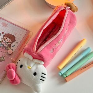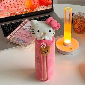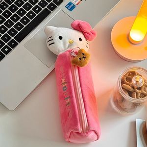 新しいかわいい漫画縦ストリップ kt 猫学生鉛筆バッグ大容量ガーリーハート文具バッグ高価値収納袋