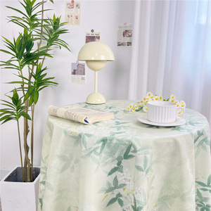 流苏餐桌布长方形茶几圆桌台布涧影竹摇新中式印花桌布古典雅致