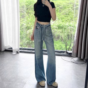 小个子渐变色满天星烫钻阔腿牛仔裤女2025夏季薄款宽松显瘦直筒裤
