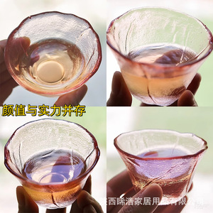 日式玻璃小茶杯锤纹清酒杯主人杯花瓣茶杯功夫茶杯高颜值品茗杯