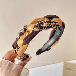 6#ブラウンチェック柄ヘッドバンド-3cm