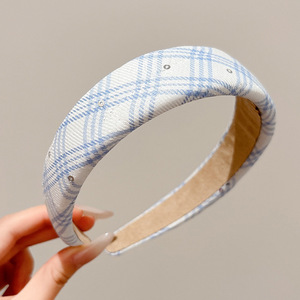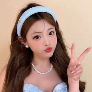6#ブルー生地スポンジヘッドバンド-2.5cm