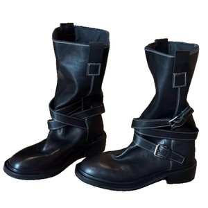 羊皮版~现货超软复古马丁靴2025新款皮带扣粗跟时装靴一脚蹬短靴