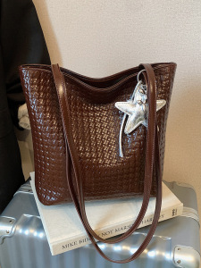 韓国版人気の大容量ハンドバッグ織り脇の下ショッピングバッグレディースバッグ2025新しいシングルショルダー通勤トートバッグ