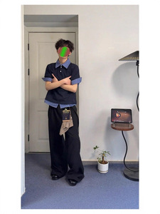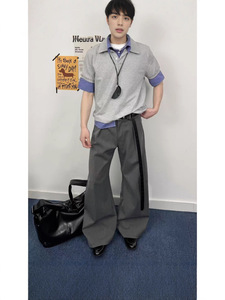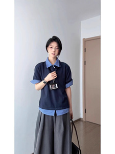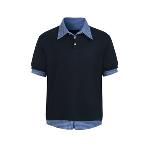 美式条纹假两件Polo衫短袖男女 夏季潮牌重磅宽松百搭情侣半袖T恤