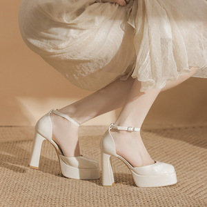 8062高跟鞋2025年新款粗跟防水台女鞋一字扣带中空凉鞋女单鞋