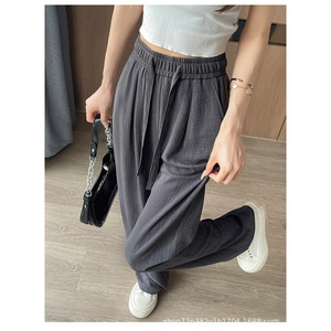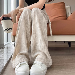 アイスシルクタイダイワイドレッグパンツ女性の夏薄いプリーツドレープストレートパンツハイウエスト巾着ルーズカジュアルコットンとリネンパンツ