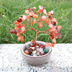 ホット販売天然クリスタルツリークリスタルフォーチュンツリーコレクションチャームティーカップベース金のなる木ホームデスクトップ富の装飾品