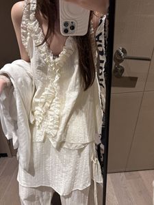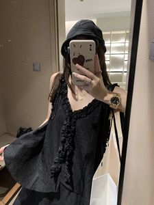 ヘビーデューティウッドエッジテンセルノースリーブVネックシャツ夏薄手ベスト多用途水玉レースサスペンダートップ女性用