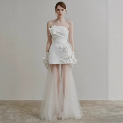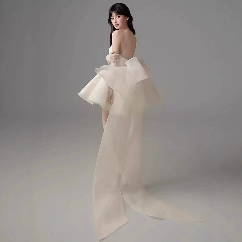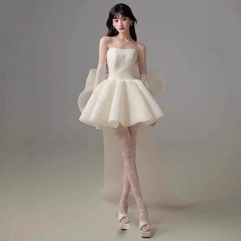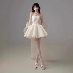 晨袍女新娘抹胸高级感小众轻婚纱订婚宴晚礼服白色生日成人礼短裙