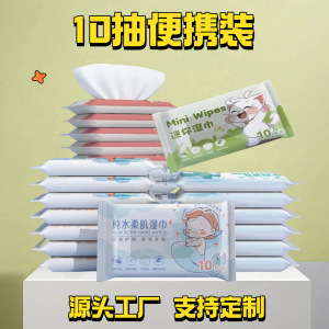 10枚入りウェットティッシュ、学生用ウェットティッシュ、個包装、携帯用、引き出し式、ベビー用ウェットティッシュ、カスタム個包装