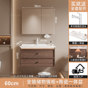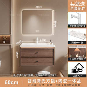 ウォールナットカラーのアンティークスタイルのバスルームキャビネットセラミック一体型洗面台バスルーム手洗い洗面台キャビネット組み合わせ洗面台