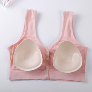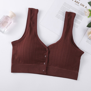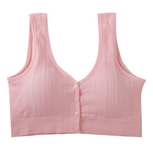妈妈款前开扣无缝内衣舒适无钢圈透气薄款中老年人背心式文胸黑色