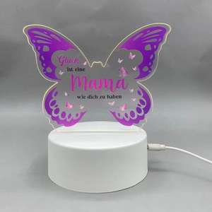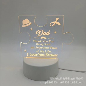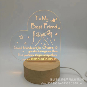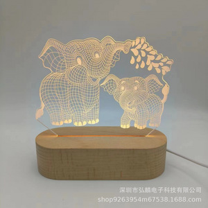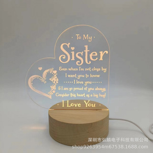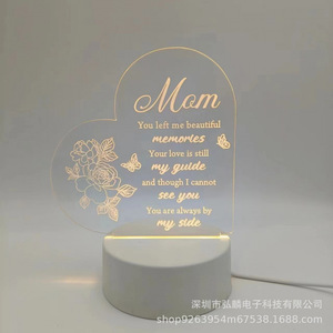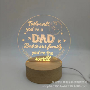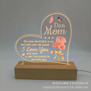 跨境创意批发母亲节礼物摆件台灯亚克力彩绘实木底座3d小夜灯礼品