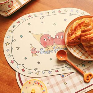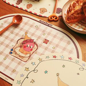かわいいスターマンプレースマット、防水性と耐油性、拭き取り可能、洗濯不要のレザーテーブルマット、漫画のトレンディなブランド、汚れ防止、耐摩耗性断熱マット
