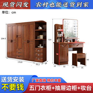 【胡桃木】五门衣柜+抽屉边柜+梳妆台 包送包安装