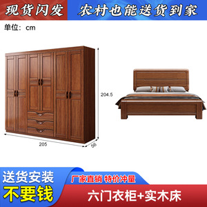 【胡桃木】六门衣柜+抽屉边柜 包送包安装