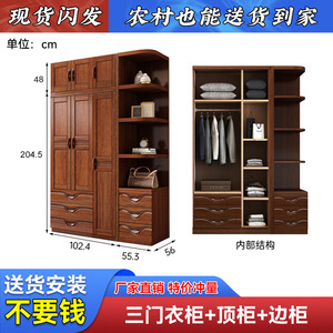 【胡桃木】三门衣柜+顶柜 包送包安装