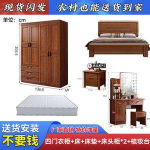 【胡桃木】四门衣柜+床+床垫+床头柜*2+梳妆台 包送包安装