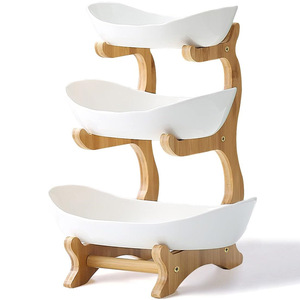 Tianyu 工芸品クリエイティブ三層フルーツプレートヨーロッパスタイルのライト高級ドライフルーツプレート竹木製スタンドホームスナックプレートフルーツバスケット