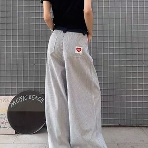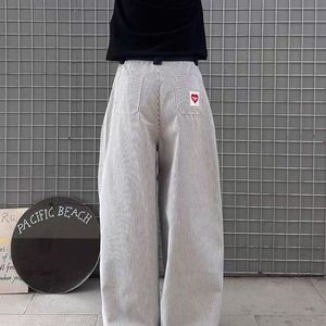 2025夏季爱心刺绣美式复古竖条纹裤子女设计感小众休闲裤直筒垂感