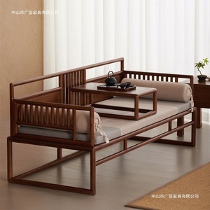 新しい中国風の古いニレ材のベッド羅漢ベッド禅ソファ組み合わせモダンなミニマリスト家具ロングソファリビングルームベッド