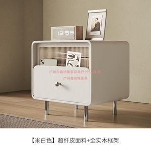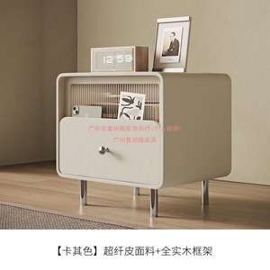 意式极简轻奢实木床头柜简约现代法式奶油风储物柜黑色皮质床边柜