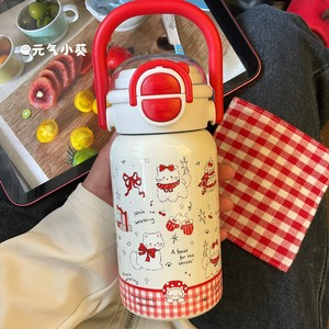 红提手透明白红星球保温杯500ML】-红格子白猫图